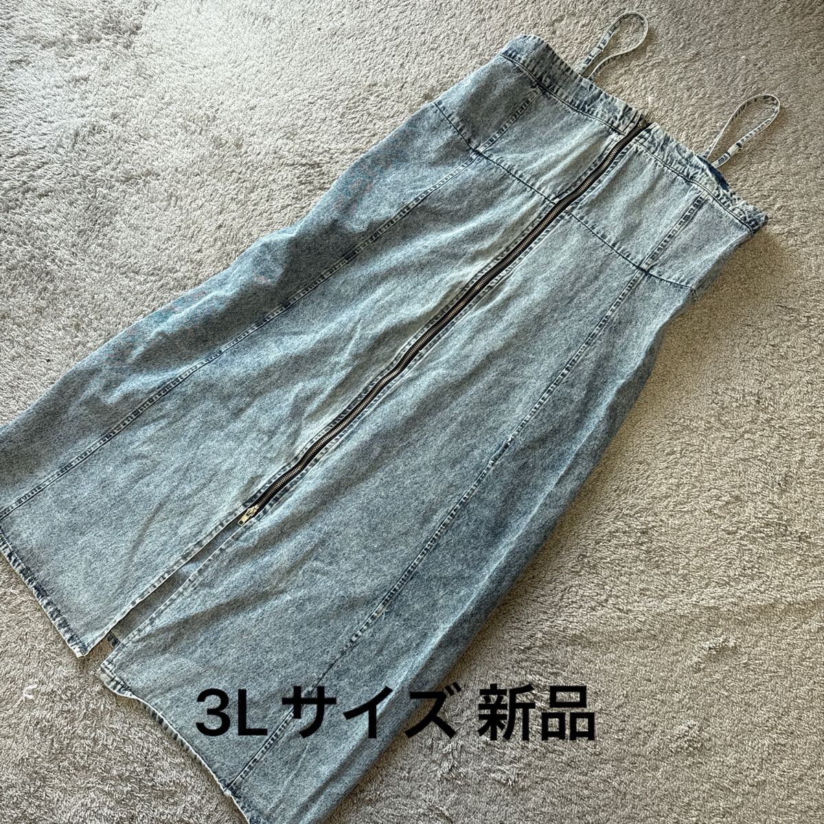 - 大きいサイズ ケミカルブルーウォッシュフロントジップデニムロングキャミワンピース3L★ゆうパケット配送可能★新品37