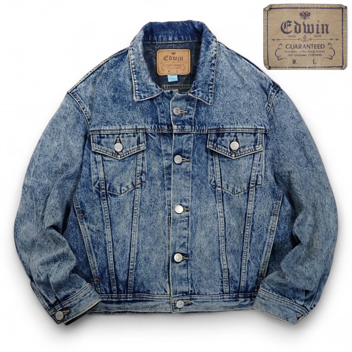 - 7131/EDWIN 80 90sビンテージ ケミカルウオッシュ デニムトラッカージャケット L●Gジャンジージャンエドウィン●洗濯プレス済●メンズ古着