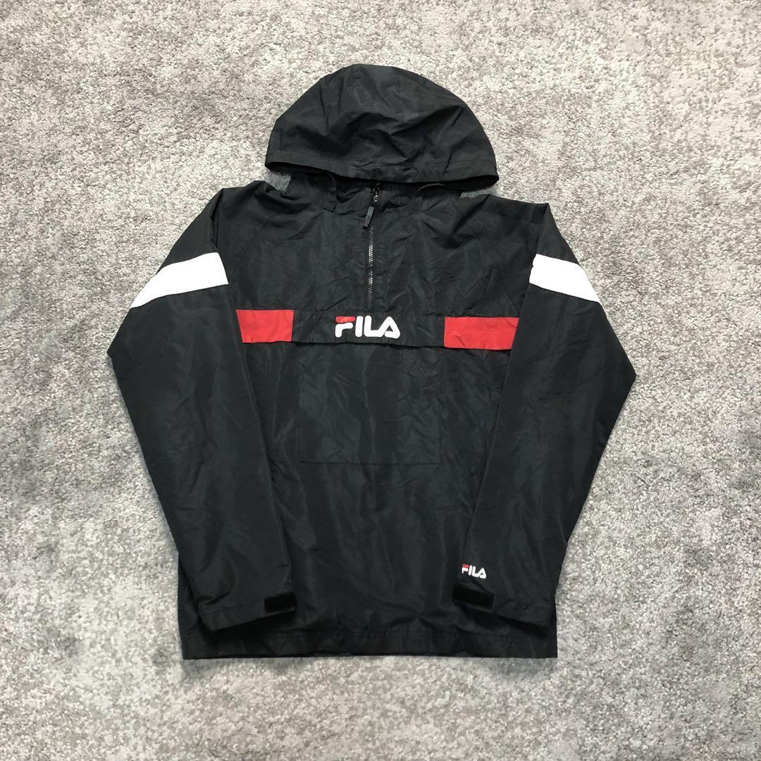 - フィラ Sサイズ ハーフジップナイロン ナイロンジャケット 黒 古着 ブラック