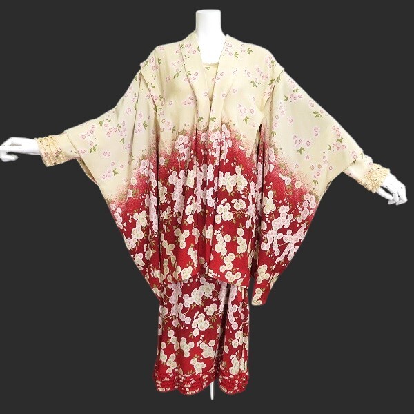 > #au ワンダフルワールド カネコイサオ セットアップ 桜柄 縮緬 ちりめん 羽織り ワンピース 2002年 和風 着物 レア 希少 [970586] k01