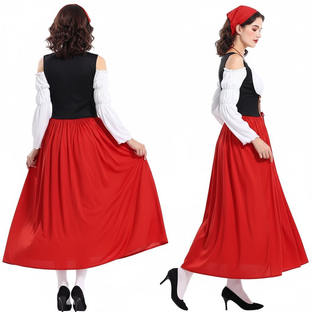 - 1円スタート ハロウィン ビールガール 民族衣装 チロリアン レッド ロング コスプレ 衣装 ワンピース ps2283