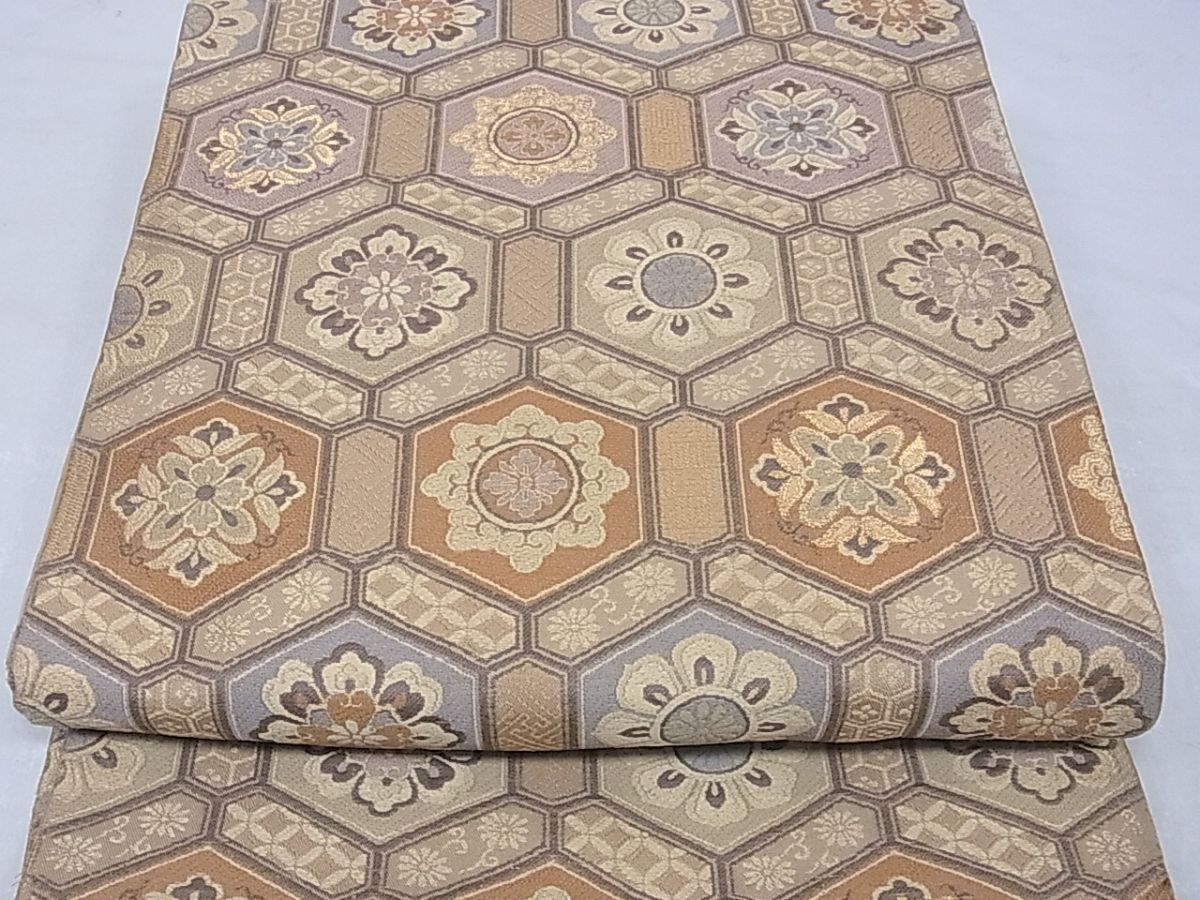 - eふれんず◆アンティーク 大正ロマン 昭和レトロ 丸帯 亀甲花文 金糸 正絹◆bm1865
