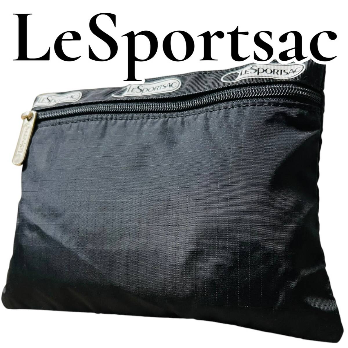 - 【極美品】LeSportsac ポーチ 無地 ブラック 小物入れ メイク 黒