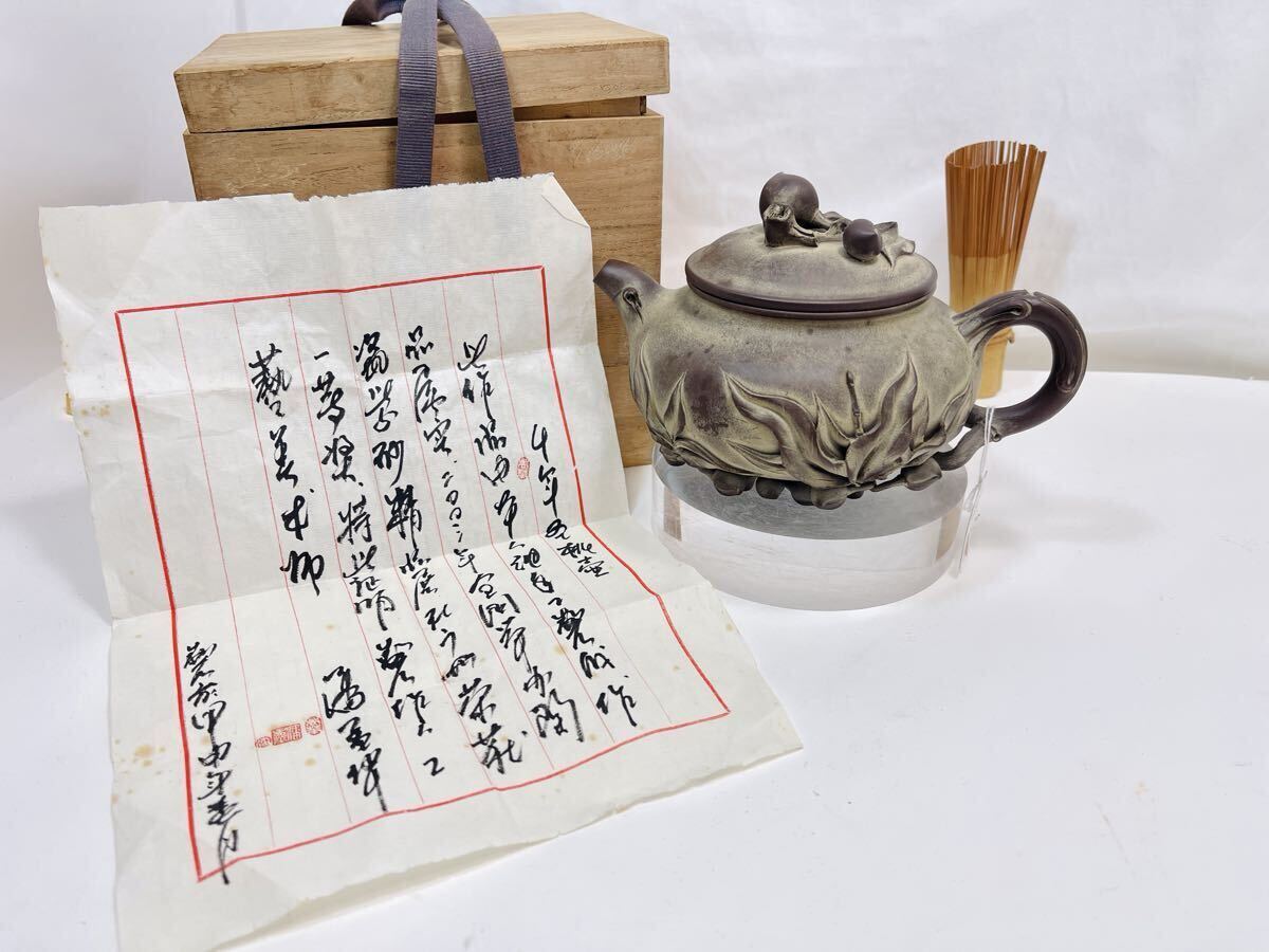> 【B221】朱泥 桃形 急須 潘孟華製 共箱付 證明書付き 極細工 急須 水注 茶壷 茶器 茶道具 骨董品 時代物 中国古美術