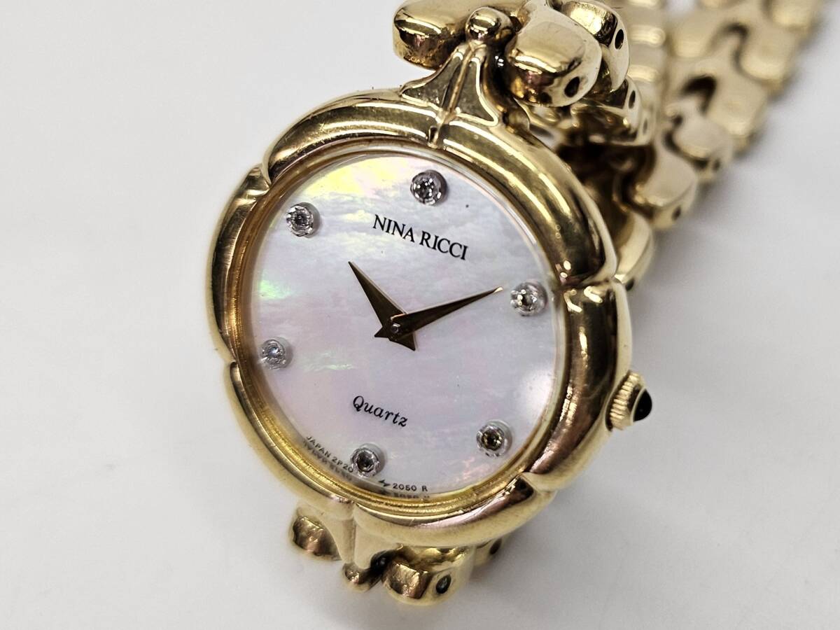 > 1円~ 不動 美品 NINA RICCI ニナリッチ 2P20-0500 シェル文字盤 6P ブレスウォッチ 腕時計 クォーツ レディース