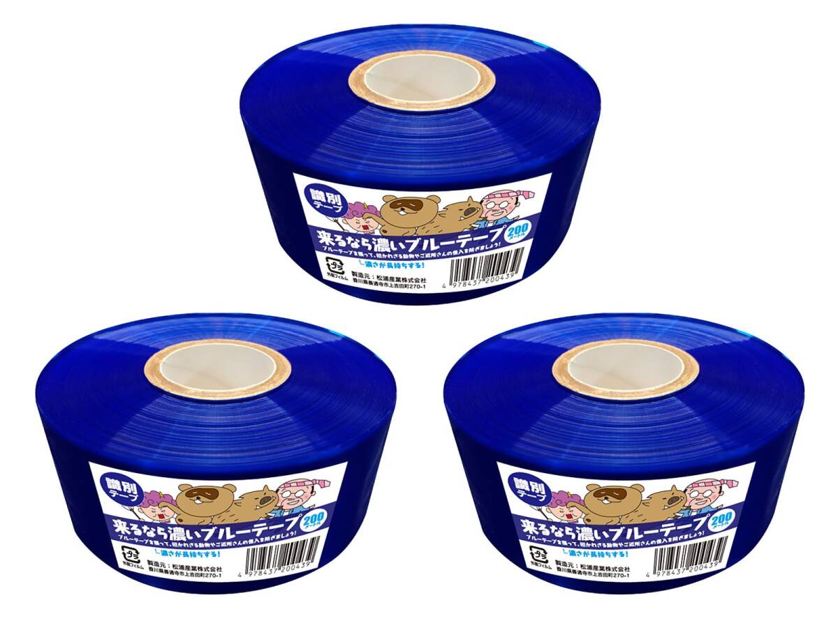 - 松浦産業 識別テープ 来るなら濃いブルーテープ 約幅50mm×長さ200m 3巻セット 害獣対策 害獣忌避 濃さが長持ち 日本製