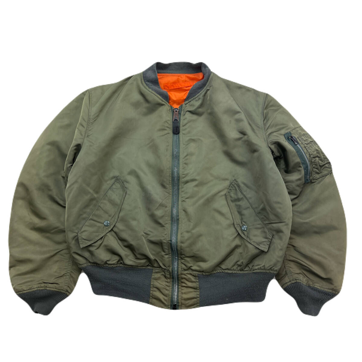 - アルファ インダストリーズ MA-1 フライトジャケット オリーブ アルミジッパー メンズ Lサイズ ●EC321
