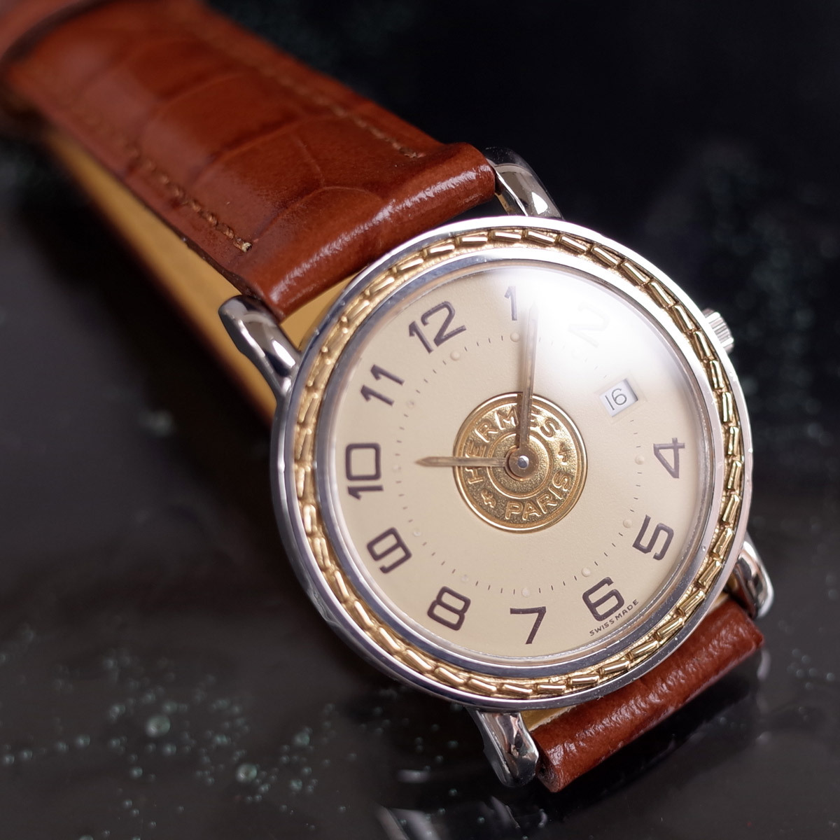 - エルメス セリエ SS/K18 YG750 アラビアインデックス コンビ 新品革ベルト レディース クォーツ HERMES 1年保証 OH済電池交換済