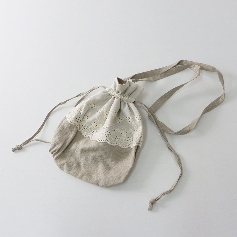 - ノベルティ 未使用 カズミ kazumi× サマンサモスモス SM2 SamansaMos2 巾着袋‖ベージュ 刺繍 スカラップ ポーチ【2400014649451】