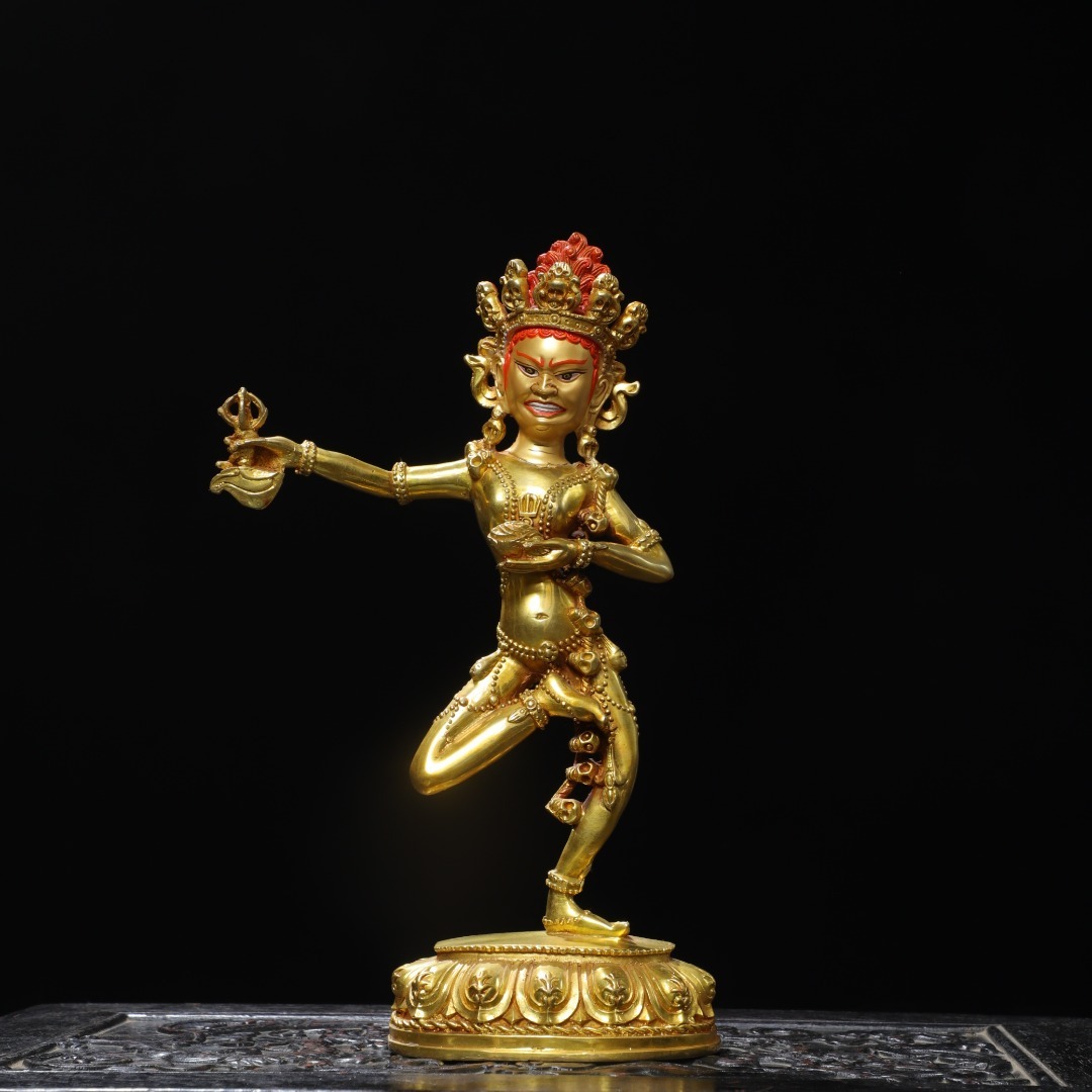 - ◆珍蔵◆中国古美術 明時代 古銅製 銅塗金 金剛亥母 仏造像 細密細工造 置物 擺件 古賞物 骨董品 時代物 A01