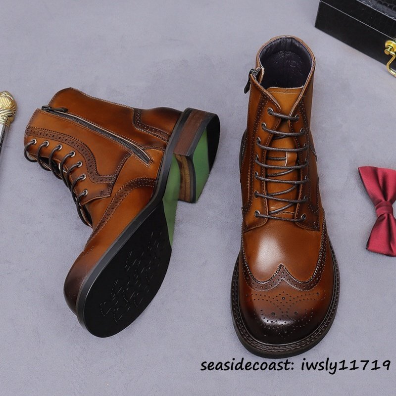 - 超希少★上質牛革 メンズブーツ マーティンブーツ ショートブーツ 本革 職人手作り レザーブーツ 紳士靴 ヴィンテージ ブラウン 26.0cm