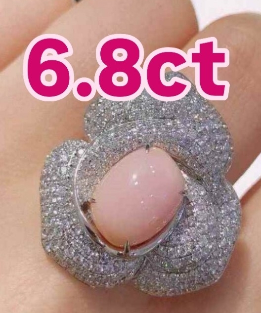 - 6.8ct サクラピンク コンクパール リング 〜自然が生んだ奇跡のピンク〜「自然の贈り物—— 6.8カラットが紡ぐ、桜色の奇跡。」新品未使用