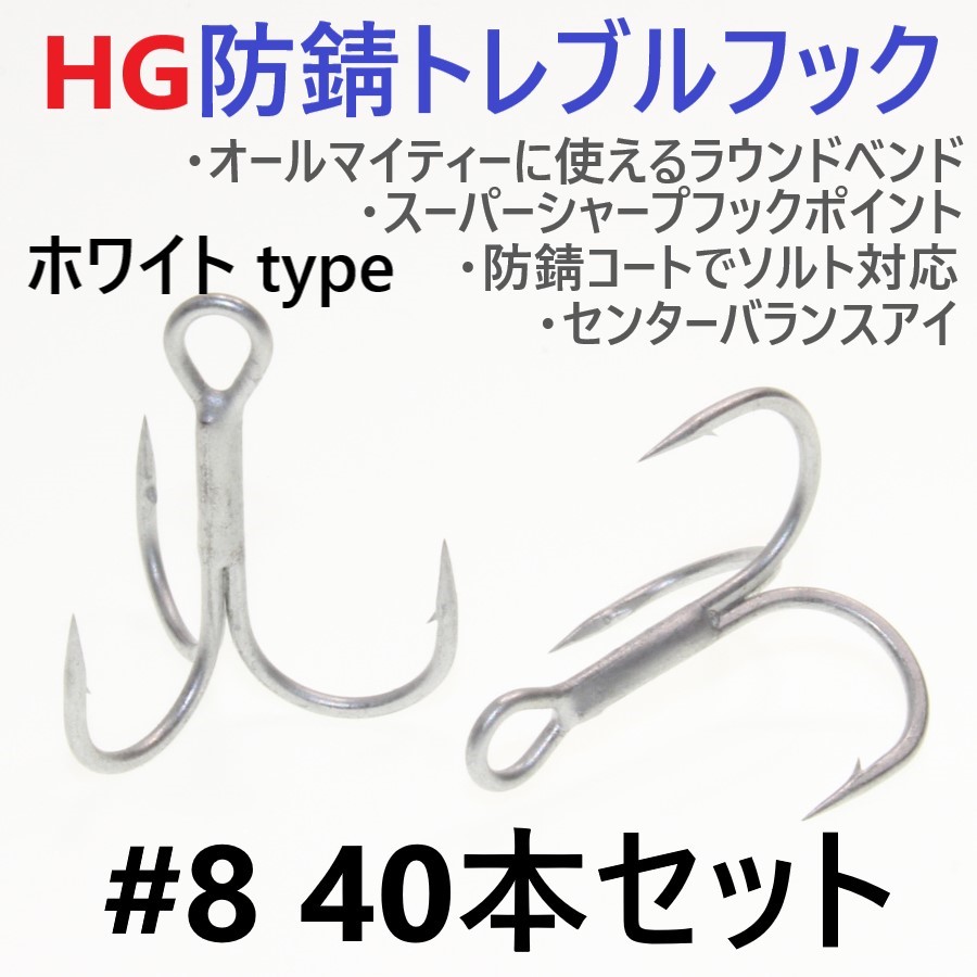 - 【送料無料】ハイグレード防錆トレブルフック ホワイト#8 40本セット 高品質トリプルフック がまかつトレブル13好きに