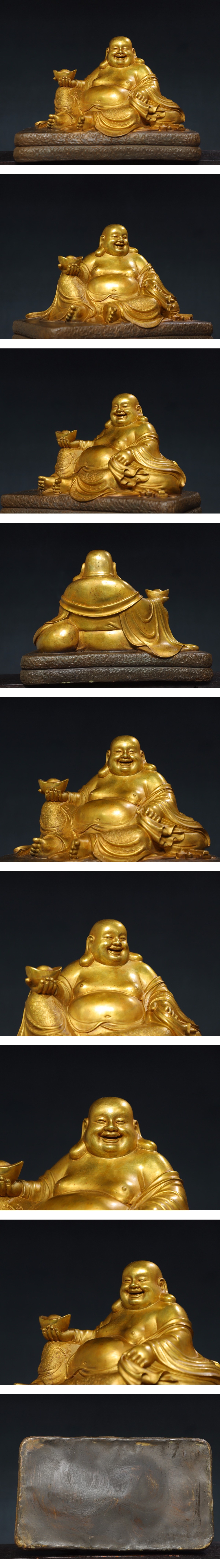 - ◆珍蔵◆中国古美術 明時代 古銅製 銅塗金 弥勒笑仏 元寶和尚 仏造像 細密細工造 置物 擺件 古賞物 骨董品 時代物 A13