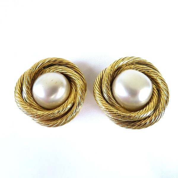 - #ape シャネル CHANEL イヤリング ゴールド フェイクパール 大ぶり 丸型 ヴィンテージ ジュエリー アクセサリー フランス製 [788782] k01