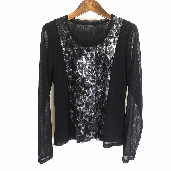 > #a スペッチオ SPECCHIO カットソー 40 黒 シルバー 長袖 パワーネット 柄 シースルー レディース [962990] k01