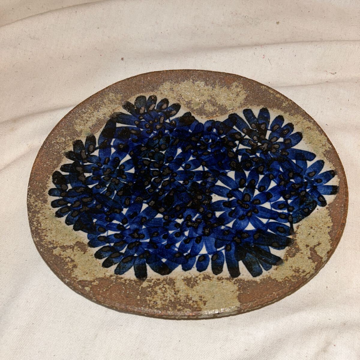 - . 【波佐見焼 洸彩窯】藍色 花柄 陶器皿 小皿/豆皿 窯印あり 和モダン 骨董 大皿 プレート 約24cm×20cm