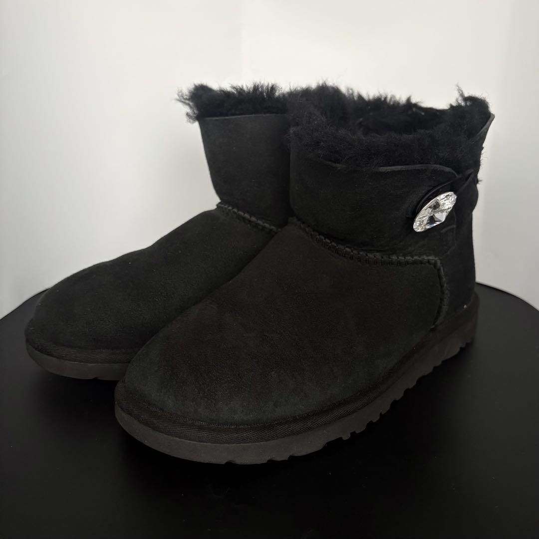 - アグ UGG W MINI BAILEY BUTTON ムートンブーツ スワロフスキー ショートブーツ 1003889 ベイリーボタン ボア 黒 ブラック 22cm