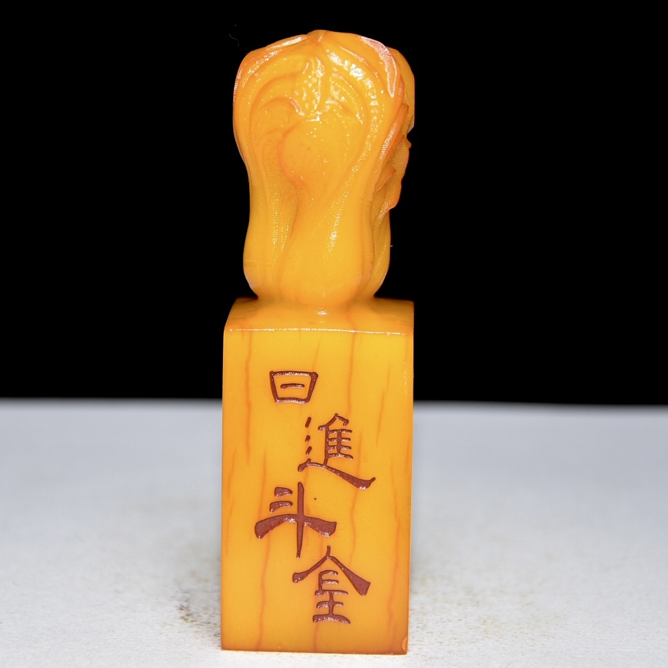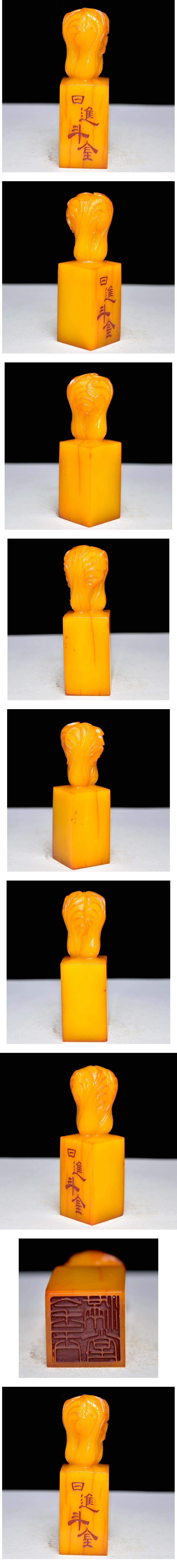 > ◆珍蔵◆中国古美術 清時代 古寿山石 田黄石彫り日進斗金 白財印章 精品 箱付 細密細工造 置物 古賞物 骨董品 時代物 A17