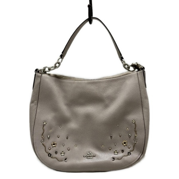 - コーチ COACH ショルダーバッグ F49127 エル ホーボー スターダスト クリスタル リベット レザー グレーベージュ バッグ