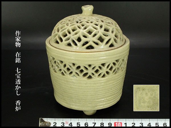 - 【銀閣】作家物 在銘 七宝透かし 香炉 旧家蔵出 送料無料(XA387)