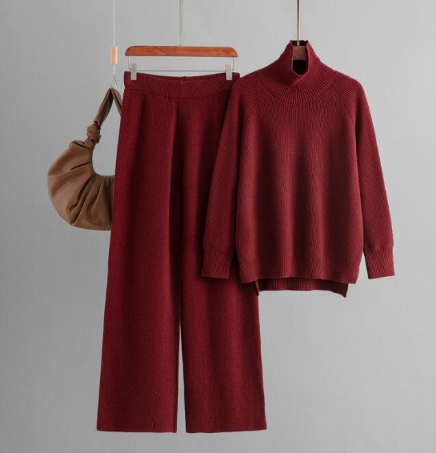 - M1017 パンツスーツレディース● 着心地抜群 20代30代40代 ● ニット素材 上下セット red