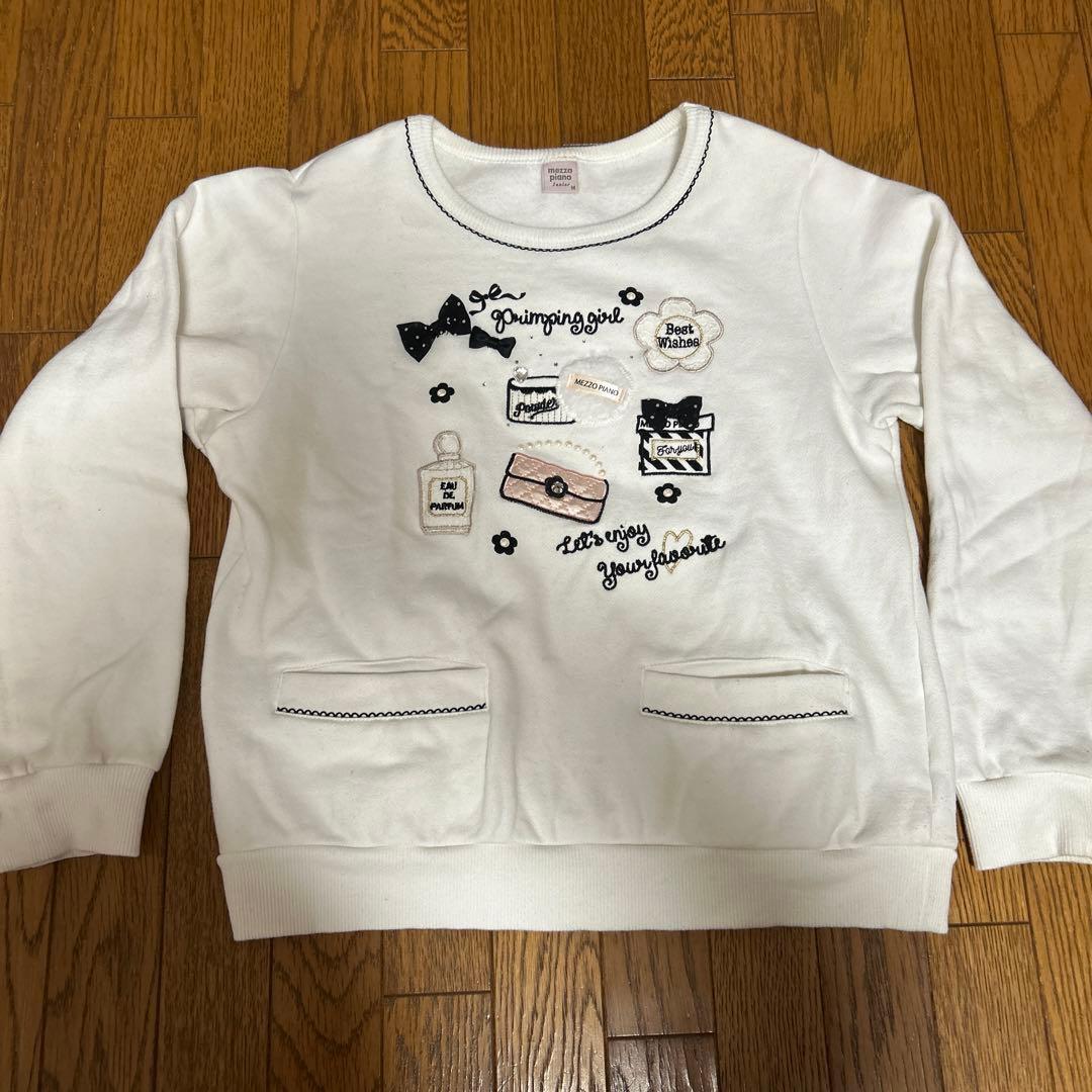 - ★美品★メゾピアノジュニア★刺繍★ホワイト色★裏起毛★トレーナー★サイズM150