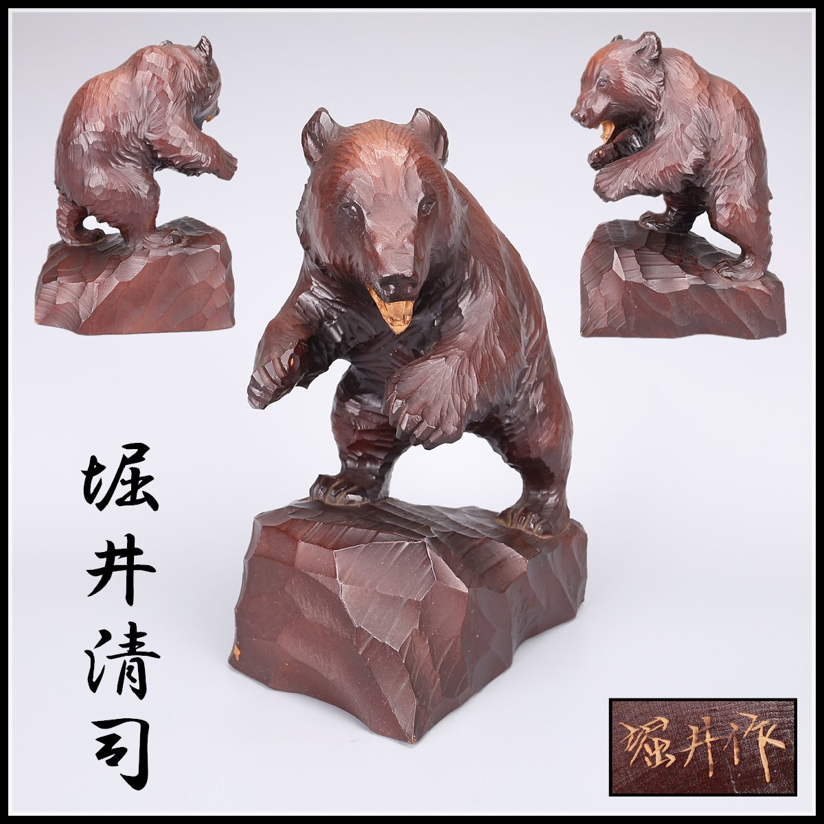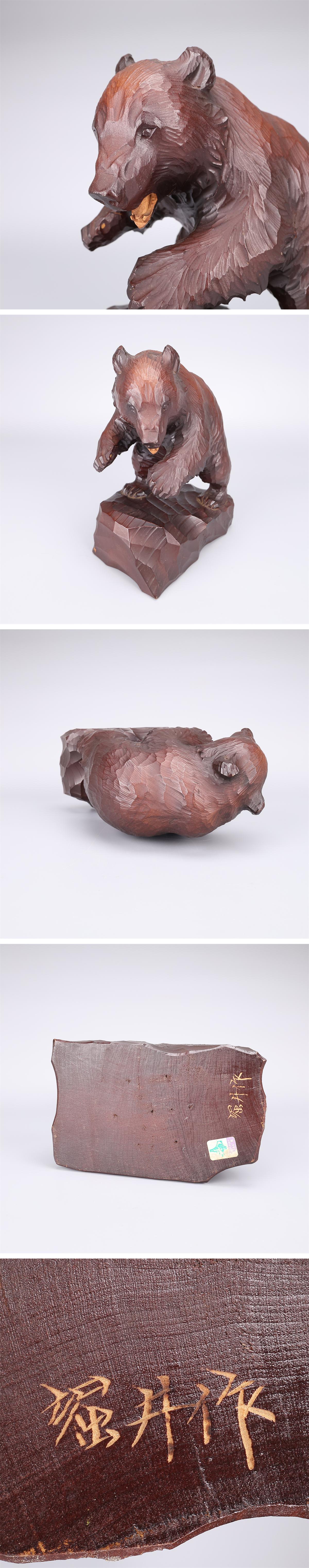 【吉】MB496 アイヌ木彫の第一人者【堀井清司】作 木彫 一木造 熊 置物 高23㎝/美品I!拍卖