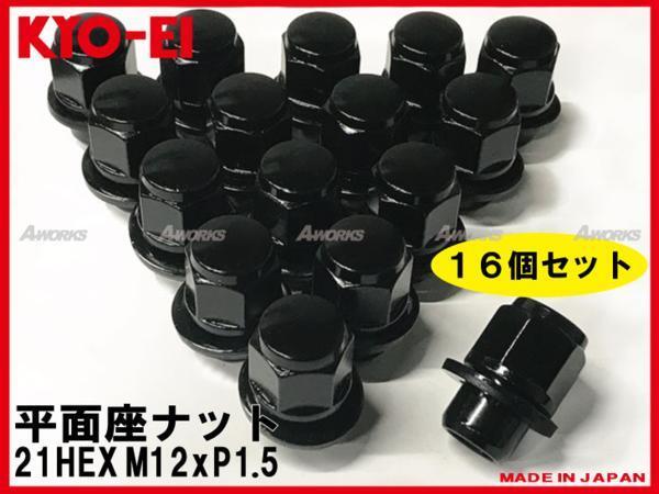 > 【日本製】トヨタ純正アルミホイール対応 平面座 ブラックナット 21HEX M12xP1.5 【4穴用 16個セット】 T201B-16P