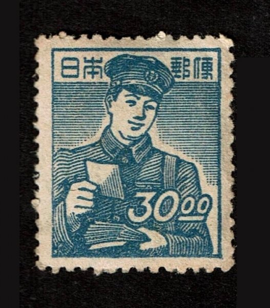- P355■1948年 産業図案切手 郵便配達 30円 スカシあり■未使用・良好