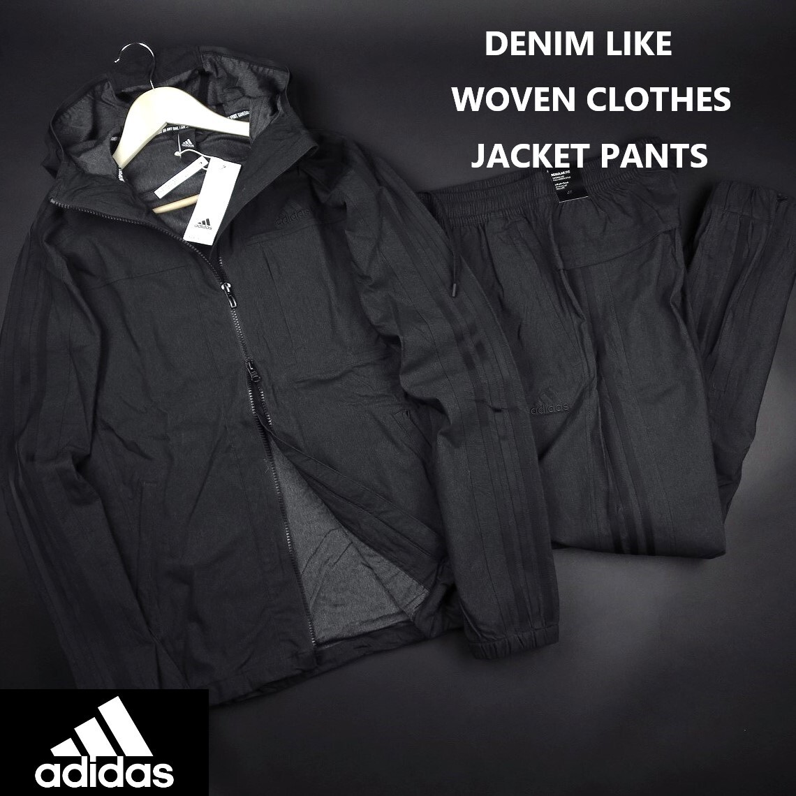 - 新品 ★ アディダス adidas デニム風 ウーブンクロスジャケットパンツ 上下セット F22・F23/390・395黒/【M】定価17600円