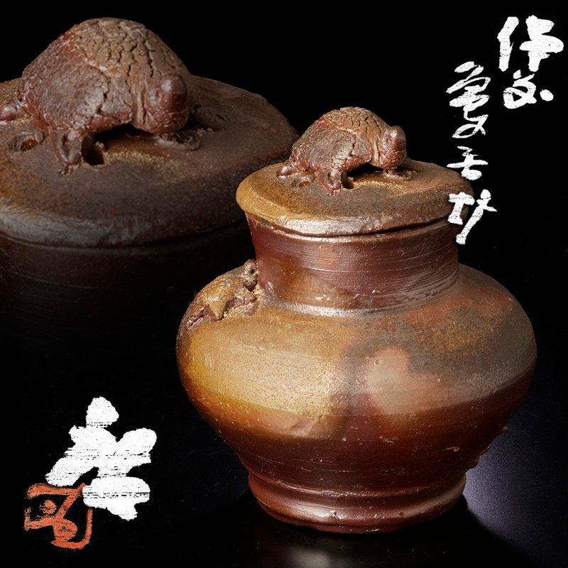 - 【古美味】人間国宝 藤原啓 備前 亀香炉 茶道具 保証品 3KYv