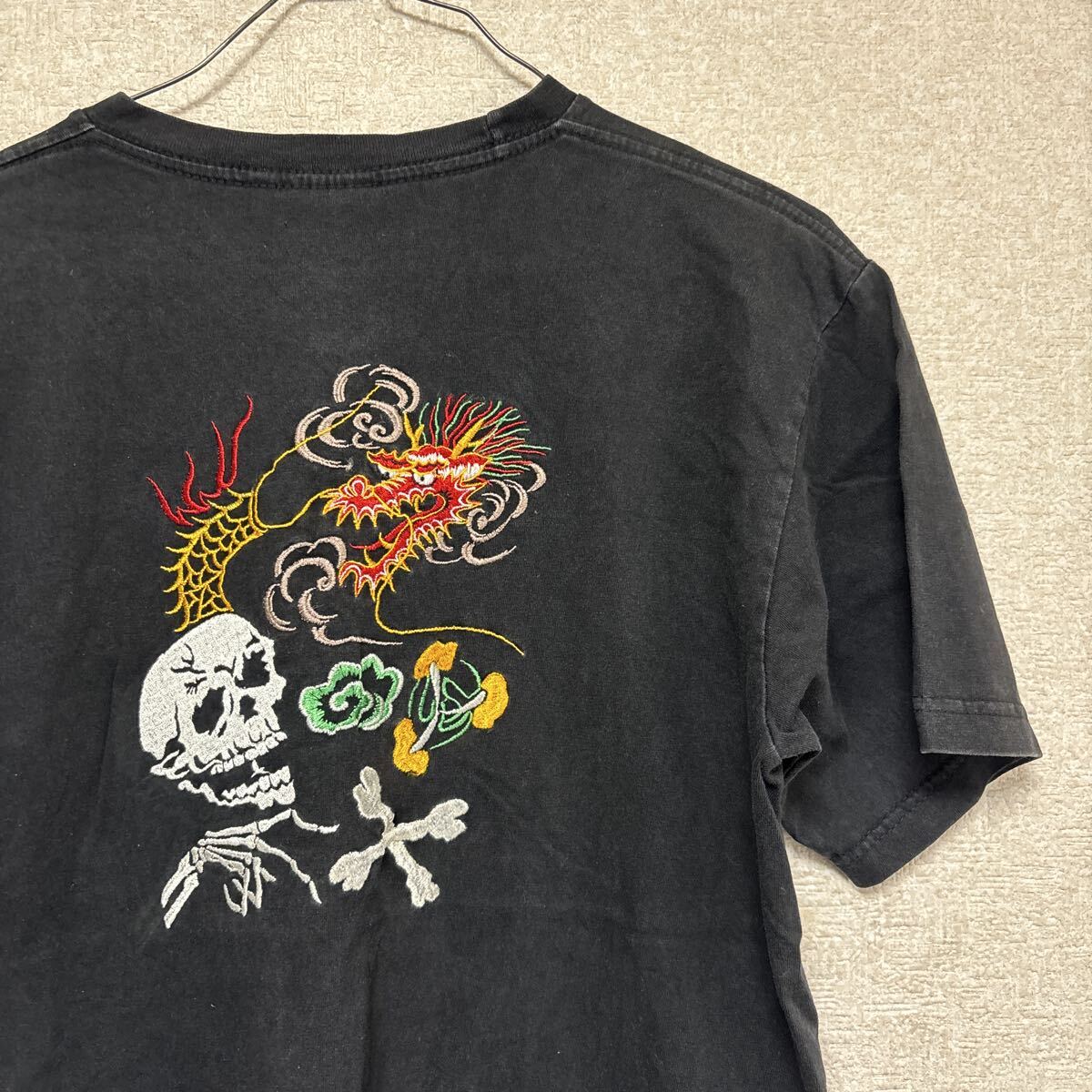 > 【絶妙フェード感】 VINTAGE ATTITUDE アメカジ 刺繍 スカル ドクロ 龍 ドラゴン刺繍 メンズLサイズ