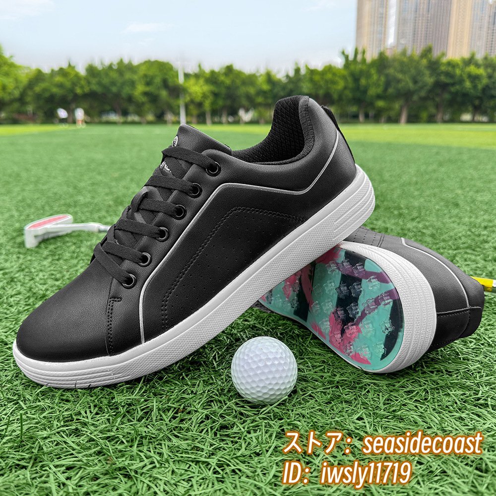 - 超希少◆ゴルフシューズ 新品 スニーカー メンズ 通気性 4E 幅広 スポーツシューズ 運動靴 スパイクレス フィット感 防滑 ブラック 28.0cm