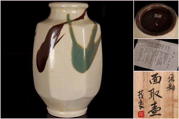 - 【若福】市野茂良『飛釉面取壷』飛釉 面取壷 面取 壷 丹波の名工 師 バーナード・リーチ 大作 高さ30.5cm 共箱 栞付 保証品 茶道具