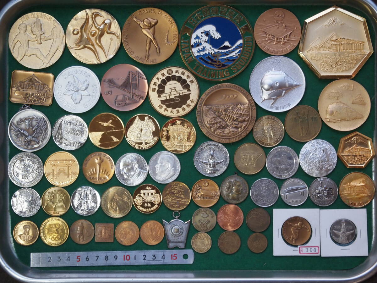 > メダル・文鎮 いろいろおまとめセット 大量 合計57個 約1.9kg 送料無料 1円スタート オリンピック エキスポ 皇室 造幣局 神戸