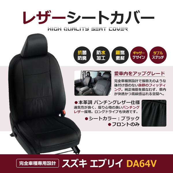 > PVC レザー シートカバー エブリイ エブリー DA64V 前期 後期 H17/8~H24/5 4人乗り用 ブラック パンチング 1列目のセット