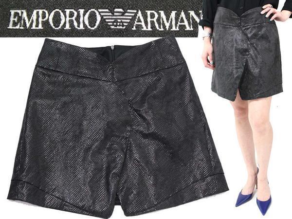 > 新品 EMPORIO ARMANI パイソン 型押し プリント スカート ブラック 40 エンポリオ アルマーニ 黒