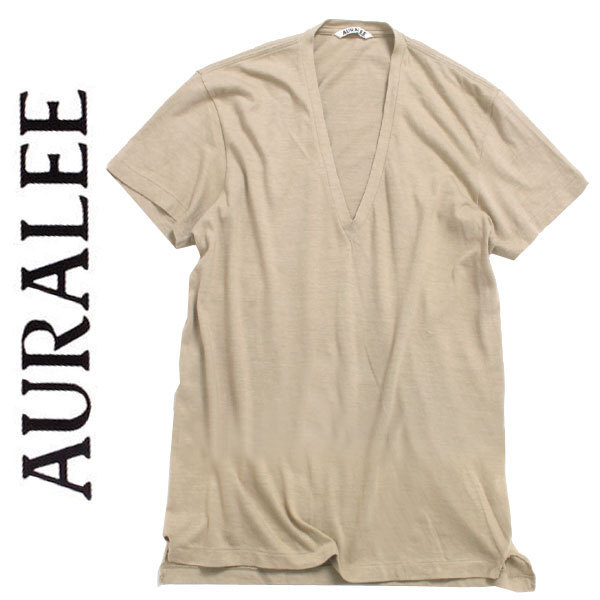 - AURALEE SEAMLESS V-NECK TEE シームレス Vネック Tシャツ 定価7,480円 size1 ベージュ A00V06ST オーラリー