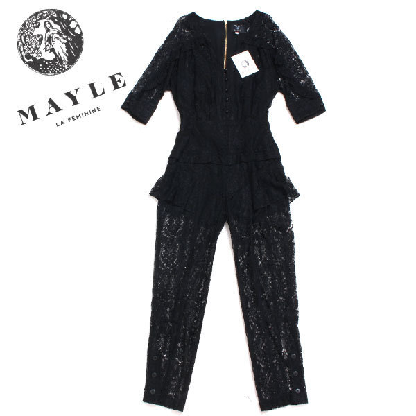 > ●SALE● 新品 MAYLE FLORINDA ROMPER 七分袖 総レースフリルオールインワン size2 ブラック 028-59011 メイル オーバーオール