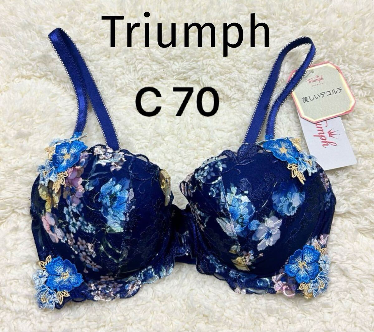 - C70 トリンプ Triumph ブラジャー 美しいデコルテ ワイヤー ネイビー