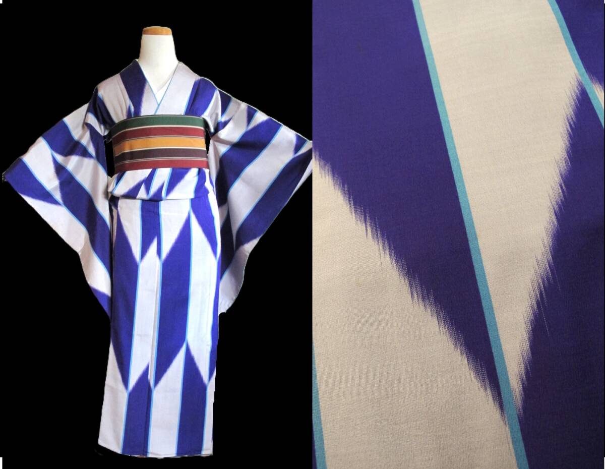 - 大きな矢絣 矢羽根 アンティーク単衣お召し着物 レターパック可