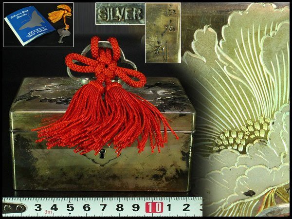 - 【金閣】銀製 刻花紋 宝石箱 silver 鍵付 未使用 旧家蔵出 送料無料(XA675)