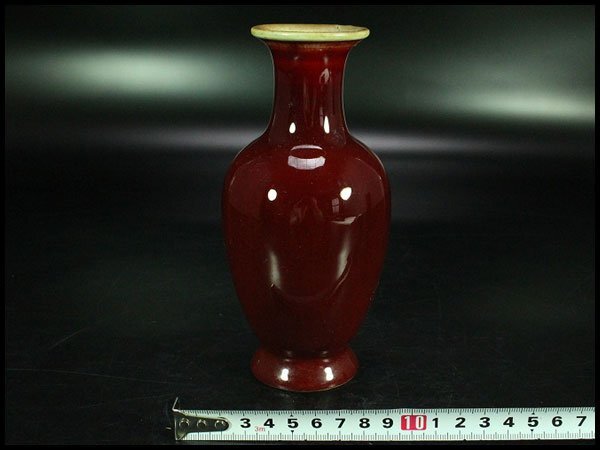 - 【金閣】中国美術 赤い 花瓶 高16.5cm 旧家蔵出 送料無料(YC475)