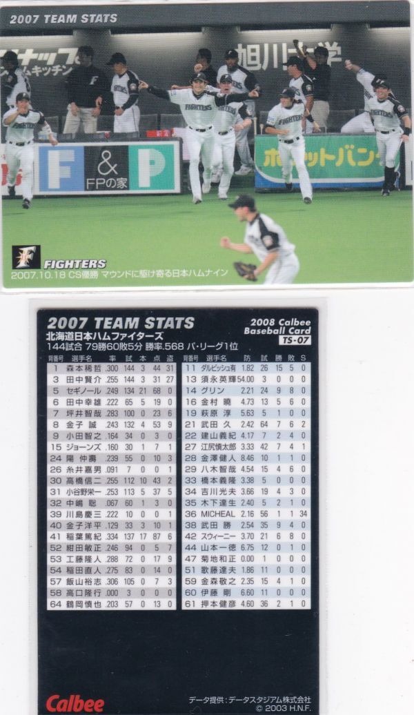- ●2008カルビー[ダルビッシュ等] TEAM STATS:CS優勝 TS-07:日本ハム R2