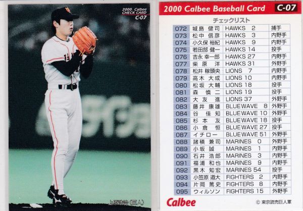 - ●2000カルビー 【上原 浩治】 CK:投球フォーム C-7:巨人 R2