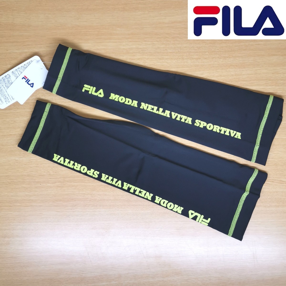 - 新品☆FILAアームカバー☆ 水陸両用 日焼け防止☆ブラック☆フィラ 送料無料!
