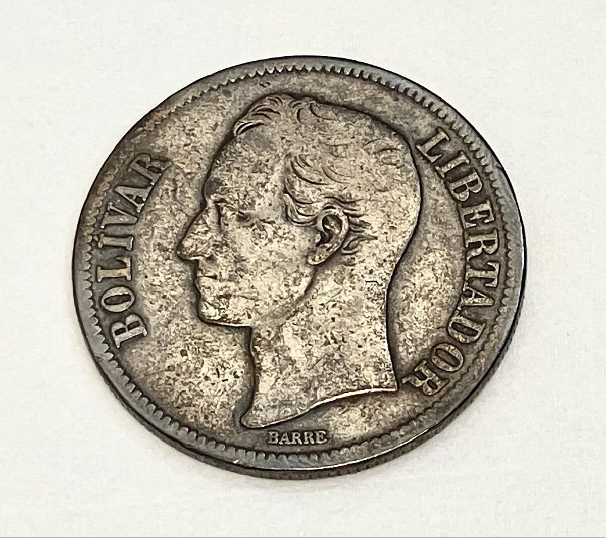 - ベネズエラ ボリバル銀貨 重量約24.3g 比重値約10.3 直径約37.3mm #8395