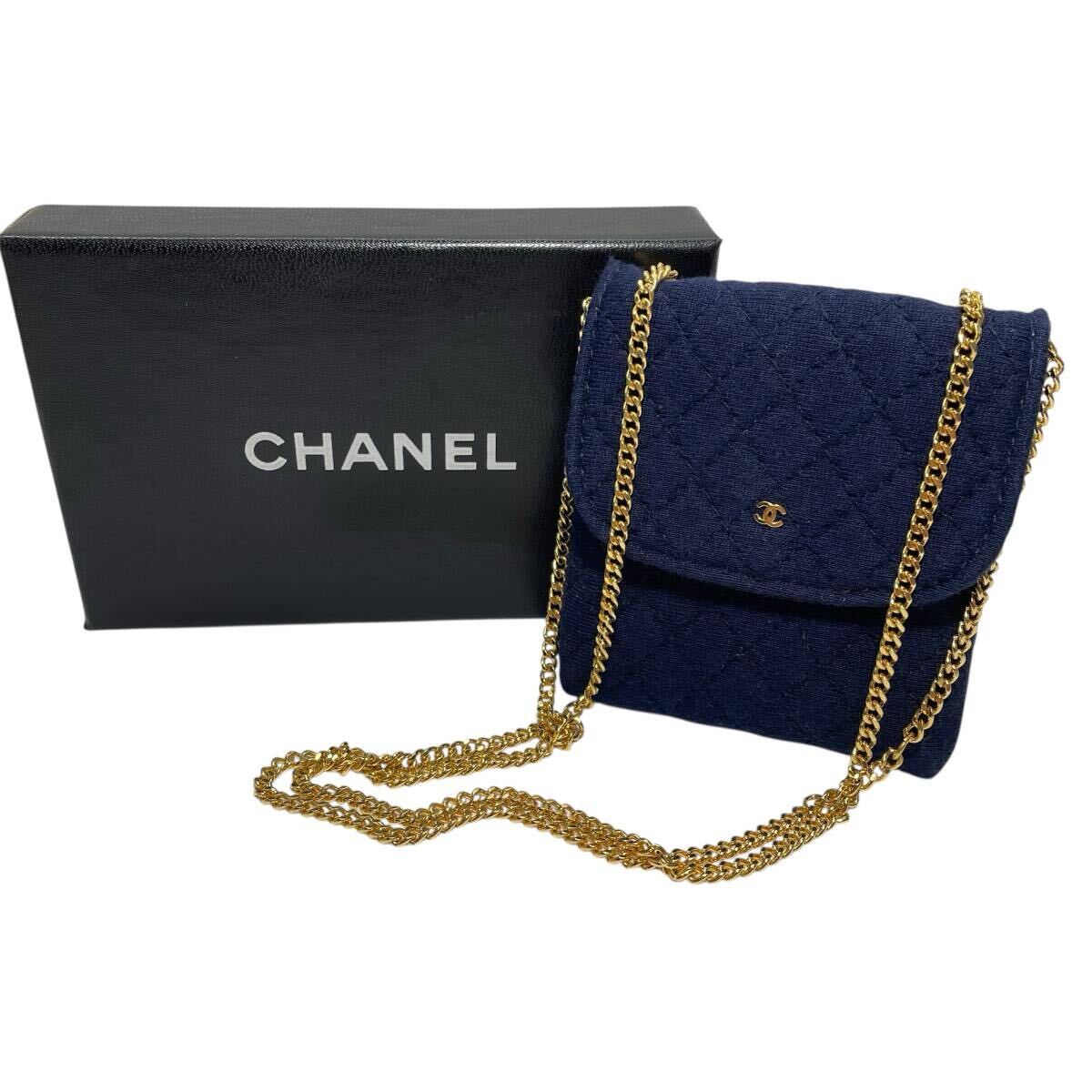 - シャネル マトラッセ コットン チェーンショルダー ミニポーチ ミニミニ マイクロ ネイビー/ゴールド CHANEL