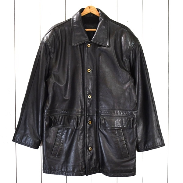 4つボタンシングル。総裏地仕上げ。ドローコード付き。ネーム刺繍なし。何にでも合わせやすいカーコートです。使えば使うほどレザー特有の味が出てきます。この機会に是非!